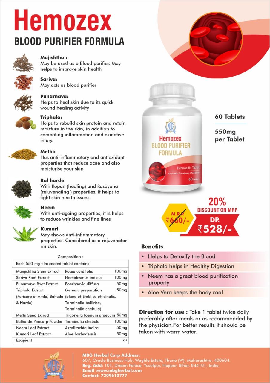 Purify your blood with Hemovedic Tablets, which promote detoxification and overall well-being.