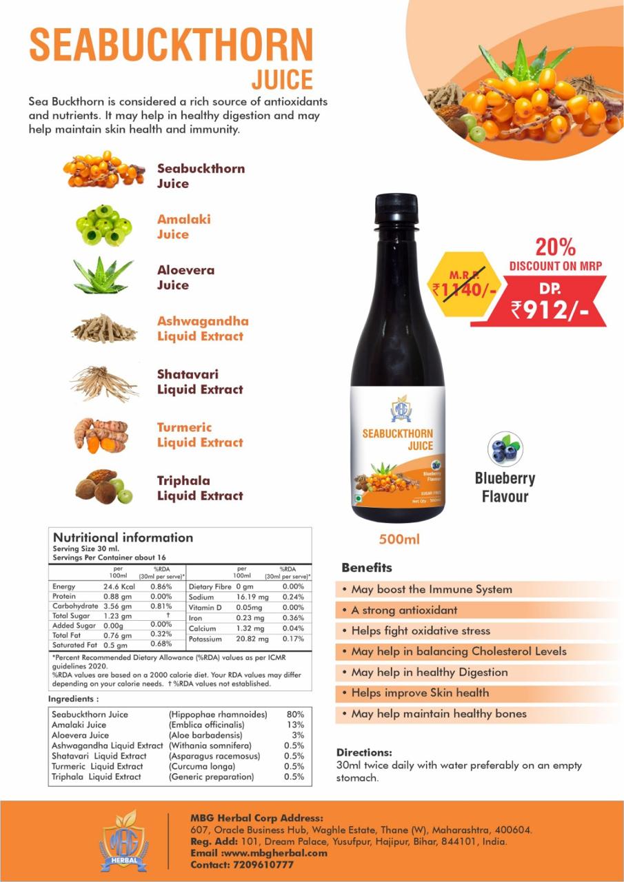 Enjoy the immunity-boosting benefits of Seabuckthorn Juice, packed with essential nutrients.